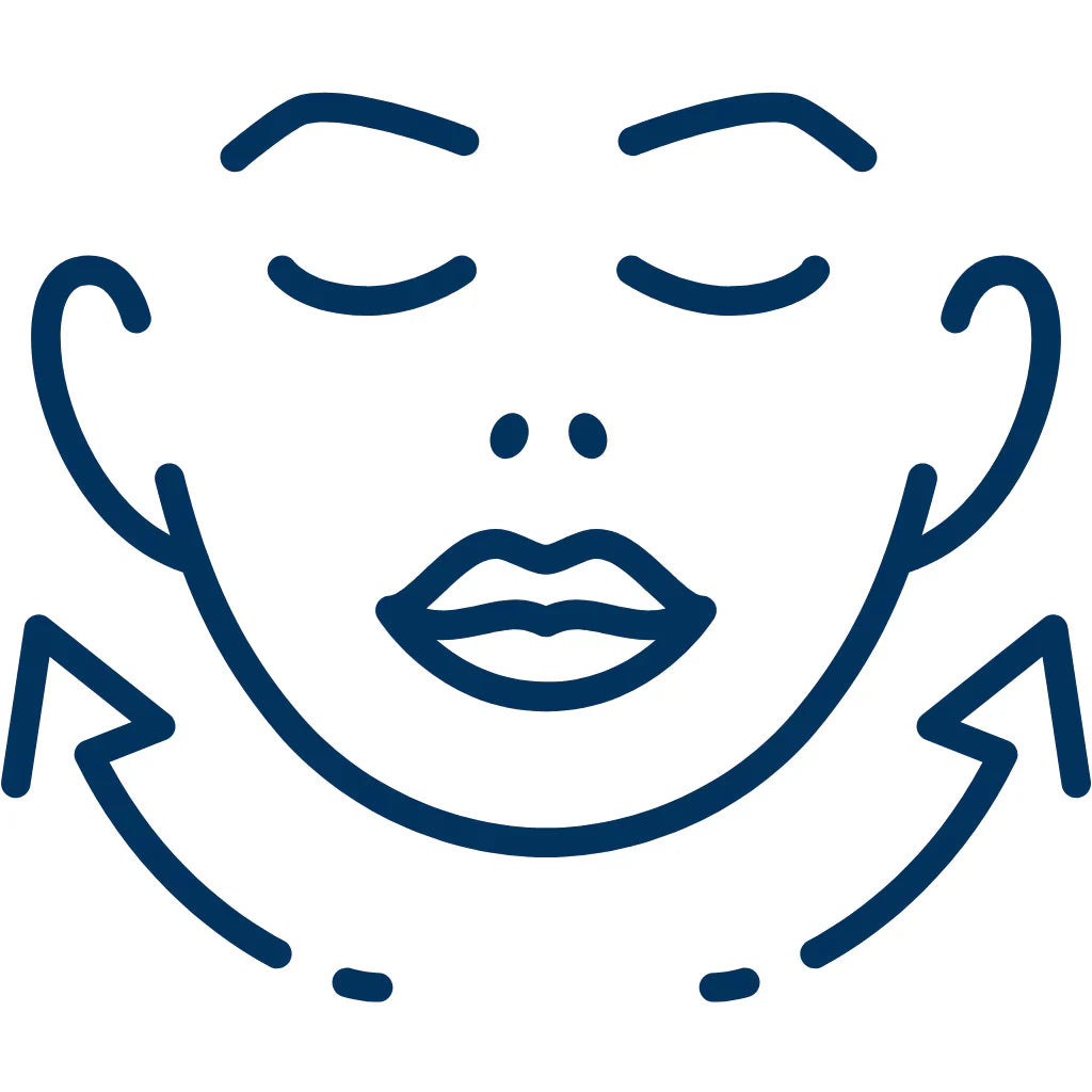 Gently stimulates muscles to lift and contour facial features.